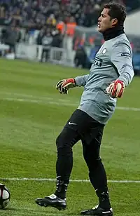 In 2003, Júlio César become embroiled in a controversy during the loss to Fluminense. With Flamengo already trailing 4–0, César, after making a save, dropped the ball on the ground and begun playing with the feet, dribbling several players until the ball was taken by Zé Carlos.[10] This attitude was heavily criticized by then coach of the team, Evaristo de Macedo, who called him an "idiot".[11] According to César, he did this because he was desperate and was feeling helpless, stating: "Fluminense was giving us the runaround and I wanted to help my teammates, who were going through a difficult situation. I overdid it because I was sad and hurt, but I already apologized on Saturday."[12]