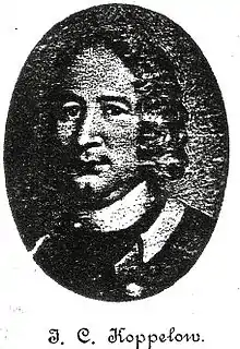 Jürgen Christoph von Koppelow or Jørgen Christopher von Koppelau (variants: Koppelöu, Kaplan, Coplou, Coppelouwe, Kobbelow) (1684–1770) was a Norwegian nobleman and officer that fought in the Great Northern War on behalf of Denmark–Norway. Von Koppelow was the son of Curt Christoph von Koppelow, a German-Norwegian nobleman from the House of Koppelow in Mecklenburg-Schwerin. Von Koppelow led the Norwegian Army's 3rd Søndenfjeldske Dragoon Regiment upon its establishment in 1750.[1][2][3][4][5]