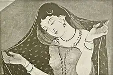 Ahivasi's paintings were inspired by the Indian miniatures of Jain, Rajput and Kangra style. Solomon was intrigued by the beauty and elegance of his line of art. He was also impressed by the thick and opaque watercolour paintings of Ahivasi that looked different from the wash technique adopted by the Bengal School of Art along with Nagarkar and others at the Bombay Revivalist School. Thereby, Solomon awarded Ahivasi with a scholarship for the mural decoration class in 1927.[4] His painting in the Rajput style titled Message received a gold medal at the Bombay Art Society exhibition in 1927.[6] From 1932 to 1935, he was also appointed as a Fellow in Painting at the school.[7][8]