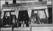 - ↑ "Advertisement for J. W. Robinson Company Boston Dry Goods Store". Los Angeles Evening Post-Record. September 30, 1908.