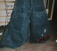JNCO, short for "Judge None Choose One", is a Los Angeles, California-based clothing company specializing in boys' and men's jeans. "JNCO was founded in 1985 by Moroccan-born, French-raised brothers Jacques Yaakov Revah and Haim Milo Revah."[1] The brand gained recognition in the 1990s with its boys' ultra-wide straight legged denim jeans featuring elaborate pocket logos and a unique street look.