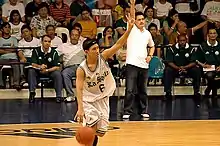 During the Game 4 of their best of five semifinal series against the Elasto Painters, with his team leading the series 2-1, he intercepted a pass and streaked down the floor unmolested for a 1-on-0 fastbreak opportunity that could have resulted in the go-ahead basket. Instead of pushing Alaska through to the finals, he slipped on a wet spot in an unfortunate incident that not only saw him turn the ball over but also forced him to miss the deciding Game Five with an injury.[9] As a result, Alaska lost the semifinal series.