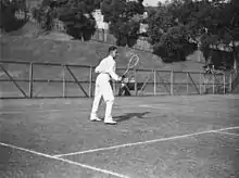 Crawford in 1933 holding his characteristic Alexander 'Cressy Wizard' flat-topped racket