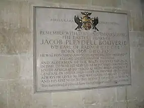 Jacob Pleydell-Bouverie, 6th Earl of Radnor, CIE, CBE (8 July 1868 – 26 June 1930),[1] styled Viscount Folkestone from 1889 to 1900, was a British Conservative Party politician and a British Army officer.