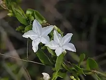 Jacquemontia reclinata is a rare species of flowering plant in the morning glory family known by the common names beach clustervine, reclined clustervine, and beach jacquemontia. It is endemic to the southeastern coast of Florida, mainly within the South Florida metropolitan area, in the United States, where little of its native habitat remains.[2] It is a federally listed endangered species.