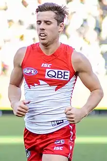 From 2016-2019, he has become one of the competition's most consistent performers from half-back, placing in the top ten in the AFL for kicks in each of these four seasons.[5] In 2017 he was runner-up in the Bob Skilton Medal, capping his rise by winning the award twice in 2018 and 2020, along with earning recognition in the 40-man All-Australian squad in 2018. Also in 2018, he became the fastest Sydney Swans player and equal-3rd fastest in VFL/AFL history to reach 100 games, owing to his impressive consistency and durability.[6] Following speculation linking him with a move to the Gold Coast Suns, he re-signed with the Swans for a further four seasons in September 2018.[7]