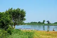 The extent of the refuge is mostly open water, but includes upland shoreline and islands with salt marsh, dunes, brackish ponds, woodland and fields. It is the only "wildlife refuge" in the National Park System. Originally created and managed by New York City as a wildlife refuge, the term was retained by Gateway when the site was transferred in 1972. Usually, federal wildlife refuges are managed by the U.S. Fish and Wildlife Service. Features created under city ownership include two large freshwater ponds. A visitor center with a parking lot provides free permits to walk the trails.[4] The two main trails go around the East Pond and the West Pond.[5] The West Pond and its trail, however, were breached by Hurricane Sandy in 2012.[6][7]