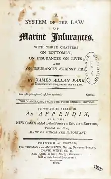 He was the son of James Park, a surgeon from Edinburgh, and was brought up in Edinburgh until his father's practice moved to Surrey. He was educated first at Northampton Grammar School and then at Lincoln's Inn. He was called to the bar on 18 June 1784 and in 1787 published a successful Treatise on the Law of Marine Insurance, which was reprinted six times during his life. That book drew much on the cases of Lord Mansfield. It brought him a good practice. As an advocate, he made more of a reputation for care than for eloquence.[1]
