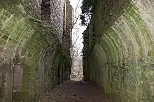 Drochil Castle, basement corridor. The Castle is notable for its planning with central corridors on three levels