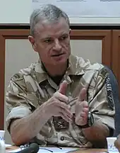 Having been promoted to lieutenant general in November 2008,[23] Dutton succeeded Army Lieutenant General Jonathon Riley[24] as Deputy Commander of the International Security Assistance Force (ISAF) in Afghanistan, a position he occupied until November 2009.[4][25] During his tenure, the insurgency in Afghanistan peaked. Dutton helped American General Stanley A. McChrystal, then overall commander of troops in the country, formulate a new strategy to combat the insurgency, which included an increase in the number of troops.[25] Dutton was succeeded in his post at ISAF by Lieutenant General (later General Sir) Nick Parker at the end of 2009.[26]