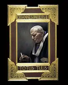 In 2005, a portrait of Pope John Paul II commissioned by The Bishop of Nottingham, the Rt Rev. Malcolm McMahon, was completed. The portrait, as of 2009, hung in the Lady Chapel at St Barnabas' Cathedral in Nottingham, and an identical copy toured the country's parishes on request.[14]