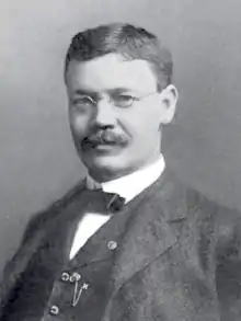 James Hartley Beal was born at New Philadelphia, Ohio in 1861. He was educated at the public schools, Scio College, the University of Michigan and the Cincinnati Law School.[2] After graduating from law school in 1886, he was married to Fannie Snyder Young of Uhrichsville, Ohio, and had two children.[3] In 1889, Beal organized the Scio College of Pharmacy, and was its dean from the start.[3]