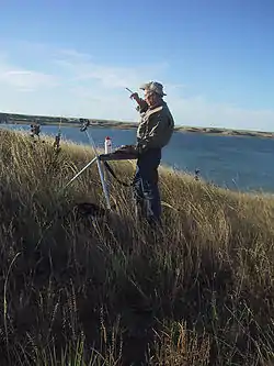 Artist James Pollock watercolor painting on location along the breaks of Lake Oahe in South Dakota.