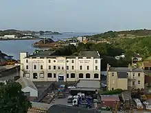 In the 1850s, the Ordnance Survey described it as "a cluster of cottage houses occupied by workmen employed in the different quarries in the neighbourhood".[1] Jamestown's prominent Naval Base Mansions were built in 1909 to house labourers from the dockyard at Rosyth. The building is B-listed, and is now used as a furniture store.[2] There was formerly a Roman Catholic chapel in Jamestown, built to serve the many Irish dockworkers who came to the area.[2] Opened in 1913 and dedicated to St Peter in Chains, it was replaced by a new church in Inverkeithing in 1977.[3] The area's Irish heritage is referenced in the name of Shamrock Terrace, a block of tenements at the bottom of Ferryhills Road.[2]