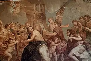 Although successful as testified by the praises sung of his work by local poets Sybrand Feitama and François Halma, he left Amsterdam and is recorded in Berlin from 1705 to 1708.[4][2] He became the court painter of Frederick I of Prussia and decorated the ceilings of Charlottenburg Palace, the Berlin Palace and other residences of Frederick I with allegorical scenes praising the deeds of the king. He painted the walls and an altarpiece in the Chapel at Charlottenburg Palace.[7]