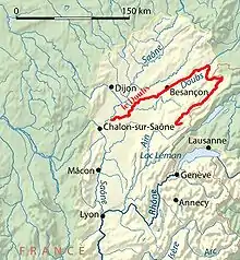 The following list includes cities and villages officially damaged by the flood of the Doubs. The flood affected 112 cities or villages in Doubs, 33 in Jura, and 20 in Saône-et-Loire, so a total of 154 localities.