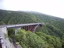 Jōgakura Bridge on National Route 394 is a popular place in Aomori to look at the forest scenery of the Hakkōda Mountains