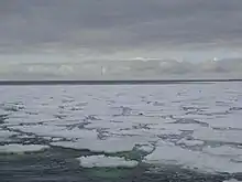 On 6 March the crew sighted distant land, about 65 km (40 miles) to the south-east – the peaks of the Admiralty Range in Victoria Land.[30][31] As they drew nearer, expectations of a landing grew;[30] on 8 March Kainan Maru stood off Dorset Point, but ice conditions made it impossible to get nearer to the shore.[31] The ship sailed on, past the Possession Islands and towards Coulman Island, where ice conditions were even worse.[31][32] To their further discomfort, their proximity to the South Magnetic Pole was causing violent disturbances to the compass needle.[31][30]