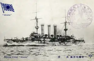 Izumo (出雲, sometimes transliterated Idzumo) was the lead ship of her class of armored cruisers (Sōkō jun'yōkan) built for the Imperial Japanese Navy (IJN) in the late 1890s. As Japan lacked the industrial capacity to build such warships itself, the ship was built in Britain. She often served as a flagship and participated in most of the naval battles of the Russo-Japanese War of 1904–1905. The ship was lightly damaged during the Battle off Ulsan and the Battle of Tsushima. Izumo was ordered to protect Japanese citizens and interests in 1913 during the Mexican Revolution and was still there when World War I began in 1914.