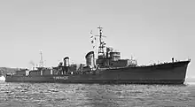 Yukikaze (雪風, "Snowy Wind") was a Kagerō-class destroyer in service with the Imperial Japanese Navy during World War II. She was the only member of her class to survive the war, and did so without suffering any major damage. She is famously known as a very fortunate ship, as she often survived numerous major naval encounters with little to no damage, while many of her allied ships would leave the battle crippled or sunk on multiple occasions. She did not accomplish anything of note in the battles of Java Sea, Midway, and Santa Cruz, but came to her own in various naval engagements in the Guadalcanal campaign, before seeing escorting missions during the Battle of the Philippine Sea, partaking in her last major surface engagement in the Battle of Leyte Gulf, and seeing her last major action of any sort escorting the battleship Yamato during the Battle of Okinawa. Following the war, the ship was transferred to the Republic of China Navy, where she was renamed Dan Yang (丹陽 DD-12) and served until 1966, before being scrapped in 1970.[1][2]