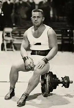 Jaroslav Skobla (16 April 1899 – 22 November 1959) was a Czechoslovakian weightlifter.[1] After winning a world light-heavyweight title in 1923 he was a favorite at the 1924 Olympics, but finished in a mere eighth place. Skobla then moved to the heavyweight category and won a bronze and a gold medal at the 1928 and 1932 Games, respectively.[2][3] He worked as an accountant, buncer, policeman. His frends collected money to send him to the games.[4]