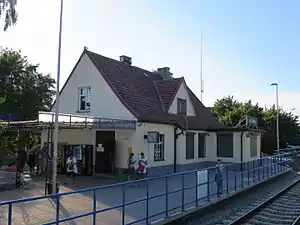 Jastarnia railway station is a railway station serving the town of Jastarnia, in the Pomeranian Voivodeship, Poland. The station is located on the Reda–Hel railway. The train services are operated by Przewozy Regionalne.