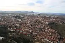 The Ramirez family was initially related to Ariza,[1] an Aragonese town near Calatayud. The great-great-grandfather of Ramírez Sinués, Lorenzo Ramírez, left his native village of Bordalba and settled in Tauste in Western Aragón in the late 18th century.[2] In the mid-19th century his son Iñigo Ramírez Martínez was already the first taxpayer of the town,[3] owned some 170 hectares,[4] a mill and a confectionery manufacture.[5] His son and the grandfather of Ramírez Sinués, Angel Ramírez Carrera (1821-1893), purchased further 630 hectares during so-called desamortización de Madóz in the 1860s.[6] He was active in the Conservative Party, served in the provincial diputation[7] and in 1881-1886 held a seat in the Cortes;[8] his career marked the economic and political climax of the family.[9] His son Javier Ramírez Orúe (1871-1943)[10] in 1897[11] married Manuela Sinués Lambea from the neighboring Gallur (died 1943);[12] she was daughter to local terrateniente family, also enriched during the desamortización.[13]