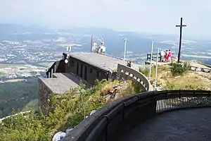 On the summit is the Ještěd Tower restaurant, hotel and television tower, designed by Karel Hubáček,[1] accessible by road or cable car (Ještěd cable car). The mountain also has a ski resort. From the summit there are views to Germany and Poland.