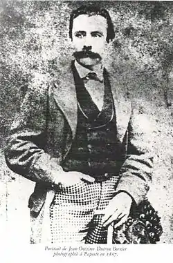 Dutrou-Bornier served as an artillery officer in the Crimean War, and by 1860, had become a master mariner. He abandoned his wife and young son in France, and in 1865, bought a one-third share in the schooner Tampico. He sailed to Peru, where he was arrested, accused of arms-dealing, and sentenced to death. Released on the intervention of the French consul, he sailed to Tahiti, where he began recruiting labour from the islands of East Polynesia for coconut plantations.[1]