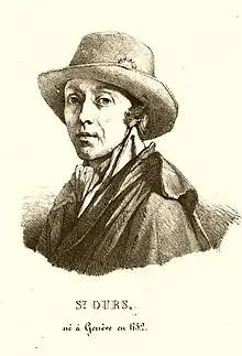 By 1792, after Revolutionary France invaded Italy, Rome became dangerous for French-speakers, and Saint-Ours returned to Geneva, where he married and entered politics, becoming elected to the Geneva Assemblée Nationale. He painted an allegorical figure of the Republic of Geneva, designed new costumes for the magistrates, and designed for civic festivities.[9] In 1795 he succeeded in getting a bust of Jean-Jacques Rousseau, who he had known, placed on a tall column in the Parc des Bastions.[10] But, disillusioned by developments in France, in 1796 he retired from political involvements and returned to painting, producing mostly portraits of the Genevan elite.[11] He also made several self-portraits, the earliest when he was 13.[12]