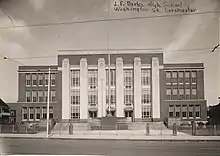 On October 23, 1921, Thompson died suddenly at his home in Brighton.[9] On October 31, Burke was made acting superintendent.[3] A week later the school committee voted to appoint him for the rest of Thompson's term.[4] He was appointed to a full six-year term in 1924 and reappointed in 1930.[10][11] On October 29, 1931, Burke died in his sleep at his home in Dorchester. He was survived by his wife, a son, and a daughter. He was buried in St. Joseph Cemetery.[2] In 1934 the city's new girl's high school was named after Burke.[12]