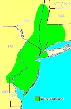 Jersey Dutch (Duits),[2][3][4] also known as Bergen County Dutch,[5] was a Dutch dialect formerly spoken in northeastern New Jersey from the late 17th century until the early 20th century.[6] It evolved in one of the two Dutch-speaking enclaves that remained for over two centuries after the dissolution of Dutch control in North America, the other (around Albany, New York) giving rise to Mohawk Dutch.[7] It may have been a partial creole language[8] based on Zeelandic and West Flemish Dutch dialects with English and possibly some elements of Lenape.