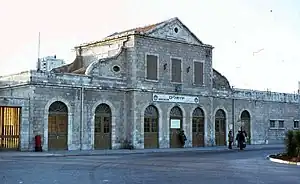 The Jerusalem railway station (Hebrew: תחנת הרכבת ירושלים, Tahanat HaRakevet Yerushalayim; Arabic: محطة قدس شريف[1]), also known as the Jerusalem–Khan railway station (Hebrew: תחנת הרכבת ירושלים – החאן, Tahanat HaRakevet Yerushalayim–HaKhan) after the caravanserai building, now the Khan Theater located across the road, to differentiate it from the Jerusalem–Malha and Jerusalem–Yitzhak Navon stations opened after its closure, is a historic railway station in Jerusalem, located between Hebron Road and Bethlehem Road, near the German Colony. It was part of the Jaffa–Jerusalem railway until its closure in 1998.