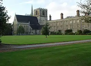 Jesus College is a constituent college of the University of Cambridge.[4] The college's full name is The College of the Blessed Virgin Mary, Saint John the Evangelist and the glorious Virgin Saint Radegund, near Cambridge. Its common name comes from the name of its chapel, Jesus Chapel.