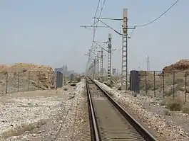 The Jiajing Railway (Chinese: 嘉镜铁路, shortened form of Jiayuguan–Jingtieshan Railway; Chinese: 嘉峪关镜铁山铁路), officially the Jingtieshan Branch Line (Chinese: 镜铁山支线), is a 69 km (43 mi)-long branch line of the Lanxin Railway in Gansu Province, China.[1] The railway line mostly runs through rural Sunan County and connects Jiayuguan City with the Jingtieshan iron mine in the Qilian Mountains south of Jiayuguan. The route follows the course of the Beida River (Chinese: 北大河) through the Qilian Mountains before reaching the Gobi Desert outside of Jiayuguan.[2]