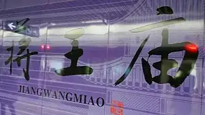 Jiangwangmiao station (simplified Chinese: 蒋王庙站; traditional Chinese: 蔣王廟站; pinyin: Jiǎngwángmiào Zhàn), is a station on Line 4 of the Nanjing Metro that opened in January 2017 along with eighteen other stations as part of Line 4's first phase. It is located underneath Jiangwangmiao Avenue on an east–west axis and within walking distance of Purple Mountain.[1] Jiangwangmiao Station was originally named "Yingtuocun" Station during Line 4's planning phase.[2]