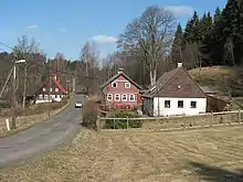 Jindřichov is a village and administrative part of Lučany nad Nisou in the Liberec Region of the Czech Republic. It has about 100 inhabitants. It has a shape of a thin, 3 km long upgoing village.