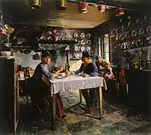 While recognition was belated, Petkovšek is now generally accepted among Slovenia's most important artists of the late 19th century, and he is considered a forerunner of expressionist movement that followed his death. He was the first artist to paint agricultural life in Slovenia,[10] but his sometimes haunting depictions of the isolation of that bucolic life, best seen in Izplačevanje koscev (1884) and Doma (Home, 1889), point to a dark modernism and existentialism for which he became posthumously famous. Art historian and professor Milček Komelj wrote that Petkovšek had no contemporary comparisons in the Slovenian art world, most of whom were considered realists and impressionists; in fact, Petkovšek ignored the accepted norms of the academic realism of the time with his use of colors in strong contrast. Komelj also wrote that Petkovšek’s Doma (Home) is the only Slovenian painting from the 19th century which later became so influential that it received the respect of the fine arts and literary communities and was the subject of artistic homage. Komelj even posited that the artist is sometimes thought of as the Slovenian van Gogh because his work directed the development of art in his country into the 20th century in terms of modernity and creativity.[11] The first major retrospective of his work was exhibited at the National Gallery in Ljubljana in 1982, and other exhibits followed in 1999 and 2015.