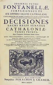 Decisiones sacri regii Senatus Cathaloniae, 1735.