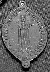 Joan was born in October 1165 at Château d'Angers in Anjou as the seventh child of Henry II, King of England and his queen consort, Eleanor of Aquitaine.[2] She spent her youth at her mother's courts at Winchester and Poitiers. As a young Angevin princess, Joan's early education consisted of subjects to ready her for a dynastic marriage. She likely learned how to sew and weave, sing, play an instrument, and ride a horse – a pastime that she might have loved because she mentioned her horse in her will.[3]