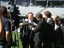 Hockey at a press conference on the ground at Docklands Stadium, Melbourne