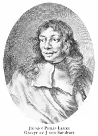 Johann Philip Lemke, also given as Lembke or Lemcke (19 May 1631, Nuremberg - 3 April 1711, Stockholm) was a German-Swedish graphic artist, etcher and battle painter.