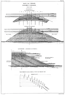 A critical aspect of this developmental phase was the contrasting levels of diplomatic support each proposal received. The English engineers benefitted from robust backing through British diplomatic channels, whereas their Dutch counterparts received negligible support from the Netherlands government. The fundamental disparity between the two designs lay in their foundational approaches: De Rijke's plan was predicated on the use of fascine mattresses, a decision informed by the soft soils of the port's seabed. In contrast, Palmer's concrete-based design was deemed excessively rigid for such ground conditions.[18]