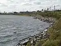 A picture taken from John's Cove facing Howland Hook and the Goethals Bridge