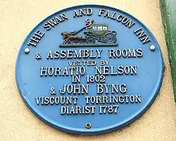 On his travels Byng met up with, or glimpsed, many of the prominent people of his age. In August 1788 he undertook a tour into Sussex with the mathematician Isaac Dalby. At Biggleswade, in 1792, he met Humphry Repton.[58] At Birmingham, in the same year, he encountered Sarah Siddons.[59] Two years later, at Ampthill, he glimpsed Lord Monboddo travelling post-haste from London to Edinburgh. Byng leaves unforgettable memories of Blenheim Palace (its grounds, gardens and gardeners[60] but not of the Duke of Marlborough himself). His meeting with Colonel Johnson,[61] told with economy, lingers in the imagination.