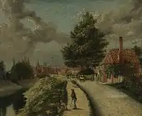 John Chubb's topographical work shows Bridgwater streets and buildings, and his portraits are of his family and local worthies. A number of the paintings feature pretty girls in ornate hats.[24] His portraits of tradesmen and craftsmen include their tools, rather like the Books of Trades of earlier centuries. There are more portraits than topographical paintings. Some time in the early C19 lithographic prints were made of about a dozen of his paintings of Bridgwater scenes, and these are fully represented in the Museum's collection. They were probably by his grandson, John Chubb the younger, also a talented artist. A letter (in the Chubb MS in the Somerset Record Office) which he wrote to his father, Morley, in 1835, mentions him having drawings reproduced as prints by Charles Joseph Hullmandel, the foremost lithographic printer of the time.