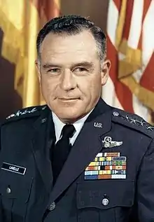 John Daniel Lavelle (September 9, 1916 – July 10, 1979) was a United States Air Force general and commander of Seventh Air Force, with headquarters at Tan Son Nhut Air Base, Republic of Vietnam. Lavelle was removed from his position in 1972 and forced to retire due to alleged misconduct over bombing missions during the Vietnam War while serving as the Seventh Air Force commander. Since the ranks of general and lieutenant general are temporary ranks and linked to their corresponding position of assignment, federal law at the time required senatorial approval for an officer to retire at these higher ranks. Due to these allegations the Senate refused to confirm Lavelle's retirement as a four-star or three-star general. Lavelle was reverted and retired at his permanent two-star rank of major general.