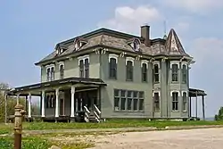 The house was built in the Italianate style for Moline grocer William B. Dawson around 1870.[2][3] The property consisted of three lots, and included the house, a barn, outbuildings, a carriageway, fruit trees, grapery, and select plants.[4] Dawson, however, defaulted on the property and John Deere purchased the house and the three lots in 1875. For the next five years, Deere renovated and expanded the house before occupying it in 1880. The additions more than doubled the size of the house.