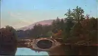 From 1872 to 1873, he travelled extensively as one of the primary illustrators for D. Appleton & Company's series Picturesque America,[9][10] whose many engravings were based on sketches or watercolor paintings done on site. Woodward's drawings and paintings illustrated the sections on "Mackinac",[11] the "South Shore of Lake Erie",[12] the "Valley of the Connecticut",[13] "Boston",[14] the "Valley of the Housatonic",[15] the "Valley of the Genesee",[16] the "Eastern Shore",[17] "Lake Memphremagog",[18] "The Upper Delaware",[19] and the "Water-falls at Cayuga Lake".[20] His Connecticut Valley, from Mount Tom;[21] Boston, from South Boston;[7] and Quebec[22] were the basis for three of its steel engravings. The work was a major influence on the growth of American tourism and on its conservation and preservation movements.[23] It was massively popular and sold more than 100 000 copies by 1880.[23] During this period, Woodward also met and befriended Harry Fenn, another important illustrator on the project, despite the two working in different areas of the country.[24]