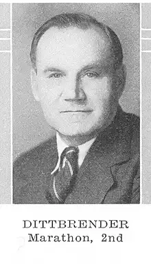 John Frederick Dittbrender (July 11, 1878 in Theresa, Wisconsin – January 4, 1966) was a farmer.[1] On March 3, 1900, he married Augusta Voeltz. He is buried in Easton, Marathon County, Wisconsin.[2]